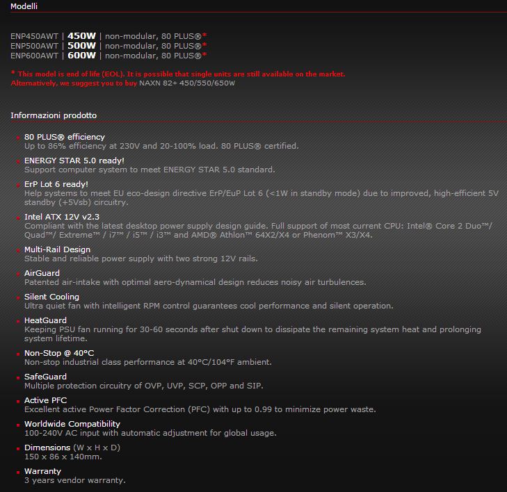 La serie "NAXN" è stata per molti anni la linea entry-level di Enermax ma seguendo i nuovi standard di produzione, è stato scelto di aumentare l'efficienza ad un livello minimo pari alla certificazione 80 Plus Bronze, mentre 80 Plus Gold per gli utenti enthusiast. Ci sono sempre state tre varianti: "NAXN basic", "80+" ed "82" ma ora verrà presentata la serie "NAXN ADV".